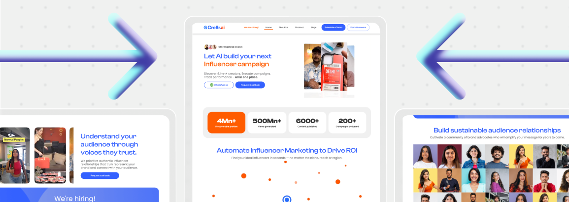 Cre8r.ai was gaining industry attention for its AI-powered influencer intelligence, but their existing website failed to communicate the product’s innovation and value. The platform was strong, but the digital identity lacked clarity, hierarchy, and persuasive storytelling.